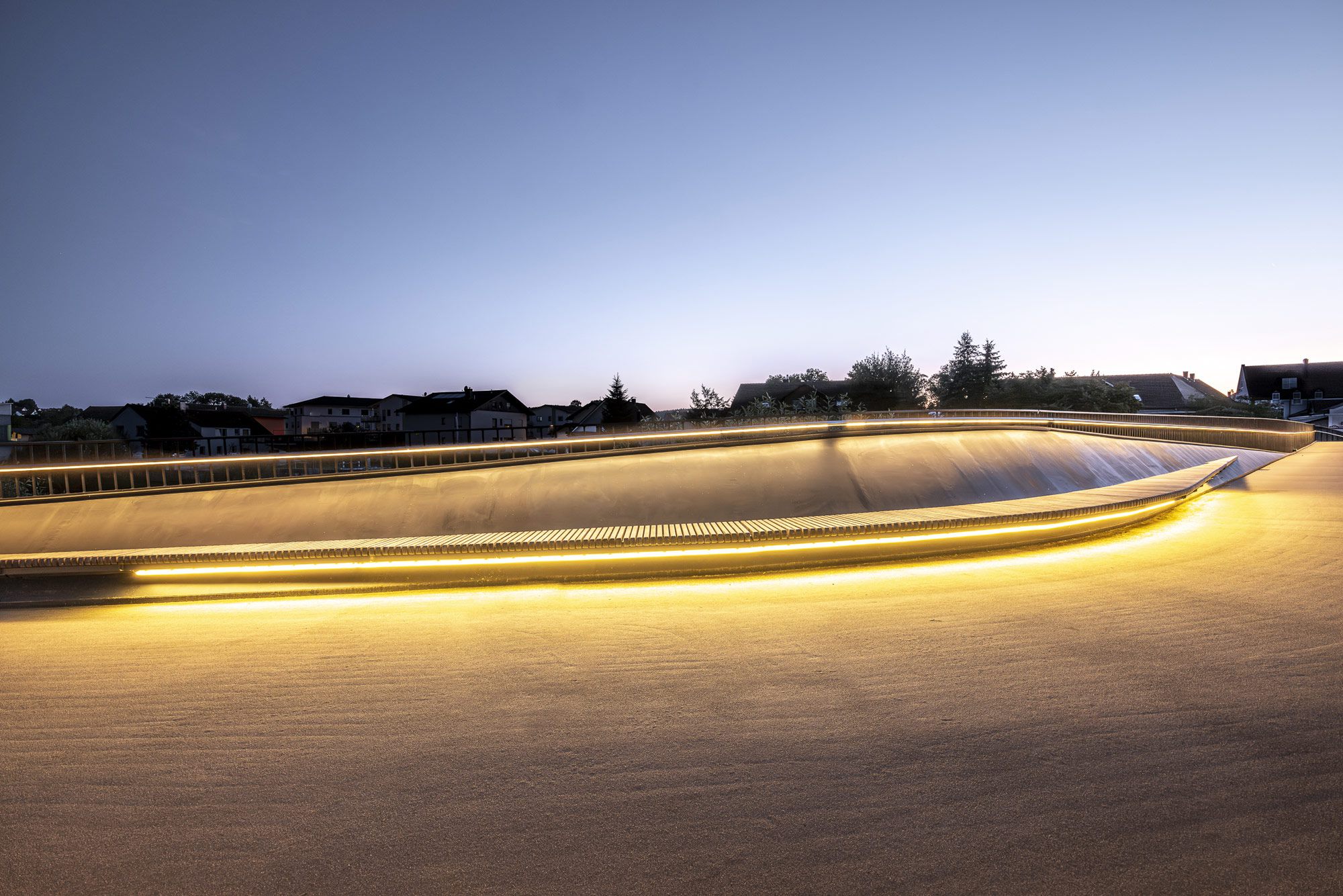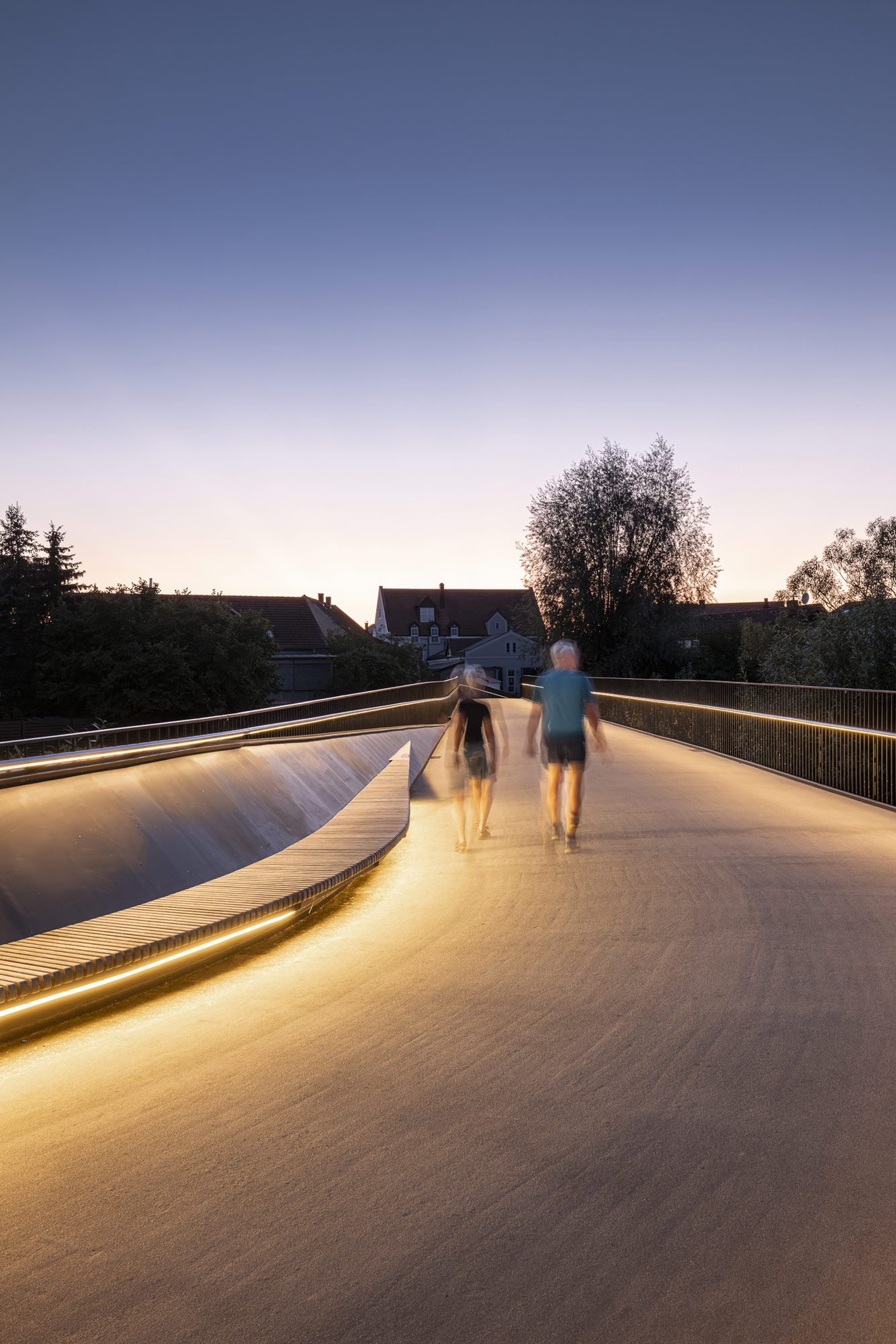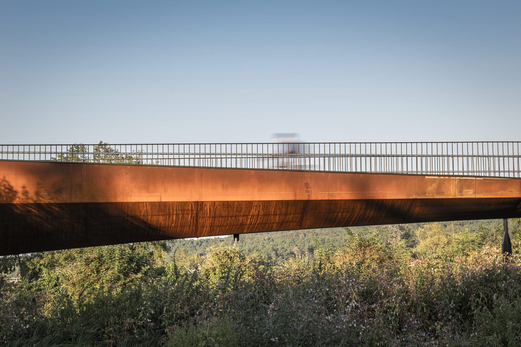 Die Regenbrücke in Roding verlangt keine Aufmerksamkeit. Kein Pylon, kein Bogen, keine Geste, die sich in den Vordergrund drängt. Sie liegt still über dem Fluss — eine horizontale Linie, die den Blick erst dann einfängt, wenn man beginnt, sie wirklich zu lesen.